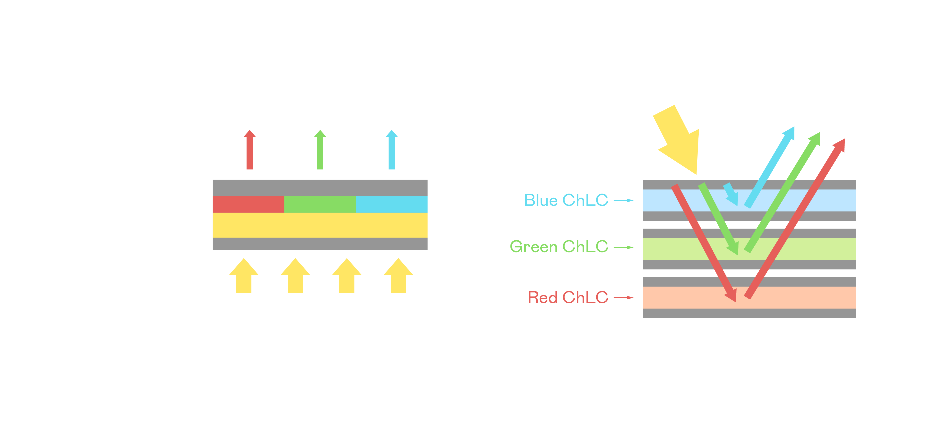 金年会胆固醇液晶显示器是由红、绿、蓝三层胆固醇液晶面板堆叠而成,并采用无彩色滤光片设计,减少环境光在反射过程中的损耗。